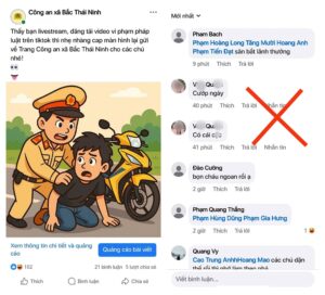 Qua công tác rà soát trên không gian mạng, Công an xã Bắc Thái Ninh đã phát hiện và xử lý 01 trường hợp sử dụng tài khoản Facebook cá nhân để đăng bình luận có nội dung không đúng chuẩn mực, thiếu văn hoá trên Fanpage của Công an xã Bắc Thái Ninh, gây ảnh hưởng tiêu cực đến uy tín của cơ quan.